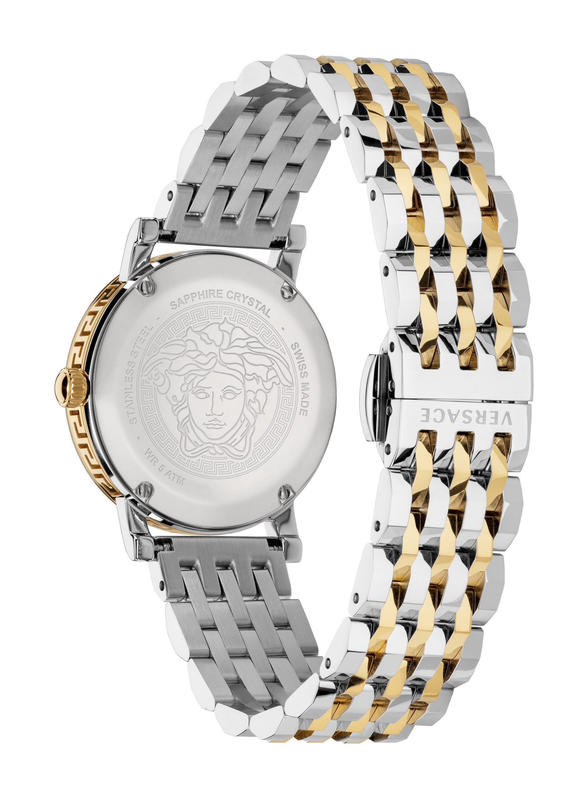 • White mother of pearl dial with Greca texture, Medusa and Versace Logo at 12h
