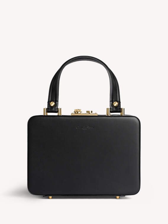 Crafted in Italy as in the best artisanal tradition, the Valì bag is made from precious high-quality leather. Curved edges provide a modern feel to its structured silhouette, enriched with a push lock clasp in gold metal and the embossed logo on the front. Refined tone-on-tone stitching runs along the edges and on the two top handles. The crossbody strap is adjustable and removable. Size: L 23 cm x H 16 cm x W 7,5 cm