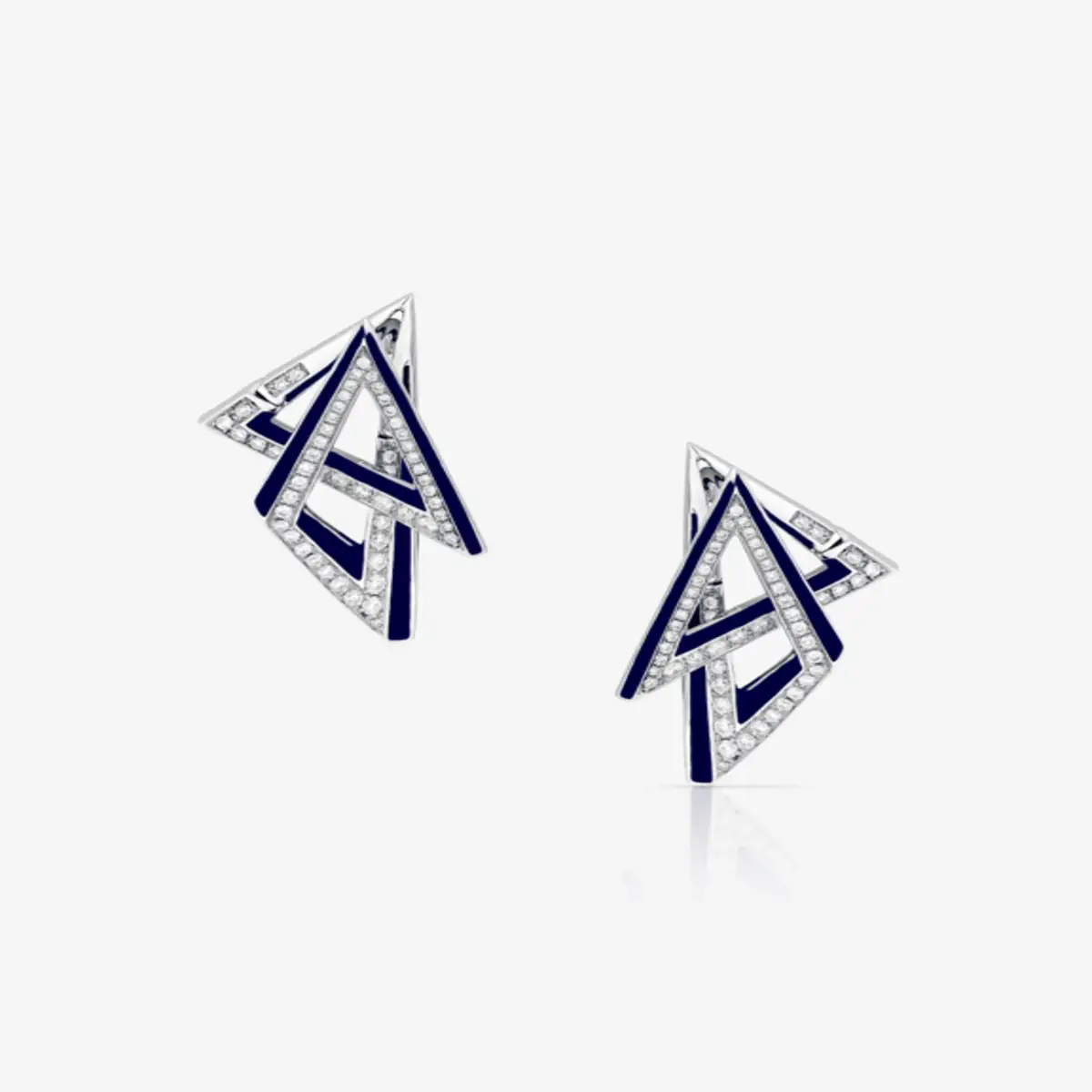 Modern and intriguing, Vertigo combines technology with tradition with mixed media materials of titanium and ceramic enamel, precious metals, diamonds and exotic baguette cut spinels. Vertigo is a collection of strong angular lines, bold colour and altered perspective set to challenge reality, creating an illusion of depth and dimension.